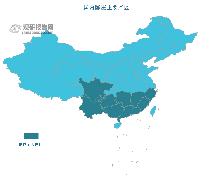 根据观研报告网发布的《中国陈皮茶饮行业发展趋势分析与未来投资预测报告(2023-2030年)》显示,目前我国陈皮主要产于福建、浙江、广东、广西、江西、湖南、贵州、云南、四川等地。