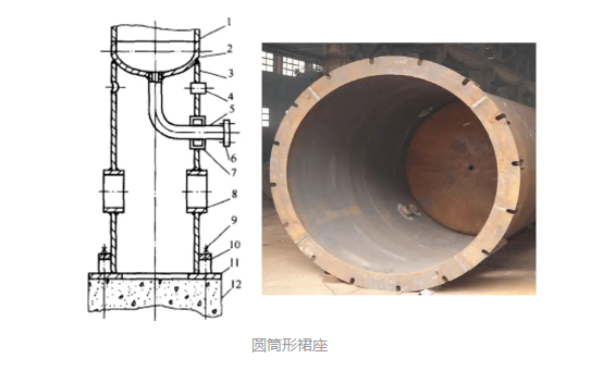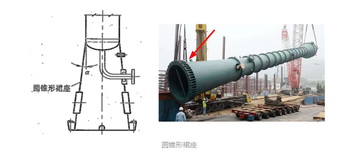 裙式支座有圆筒形和圆锥形两种结构类型,其中圆筒形裙座较常用,裙座圈为圆筒形的裙座结构类型。圆锥形裙座只用在水泥基础所承受的压应力过大时。