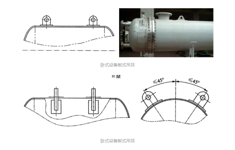 卧式设备板式吊耳指焊接在卧式设备筒节上,使用钢板制作的吊耳。