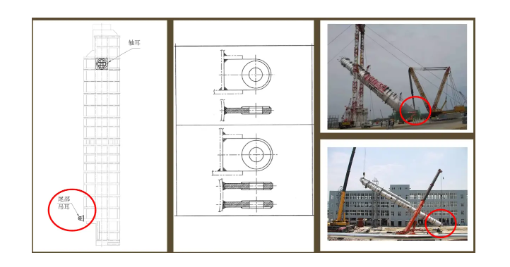 轴式吊耳应对称布置在设备重心以上位置处。具体位置应考设备及附属结构,吊装时设备受力、吊装空间等因素。