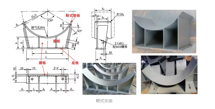 鞍式支座是指塑板与卧式容器局部贴合并呈马鞍形的支承结构 。它是一种卧式容器支座。卧式设备一般用两个鞍式支座支承,当设备过长,超过两个支座允许的支承范围的,应增加支座数目。鞍式支座是由鞍式垫板(加强板)、腹板、筋板和底板焊接制成。