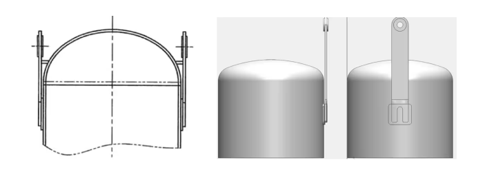 轴式吊耳指焊接在设备筒节上,使用钢管或卷制钢板制作的吊耳。