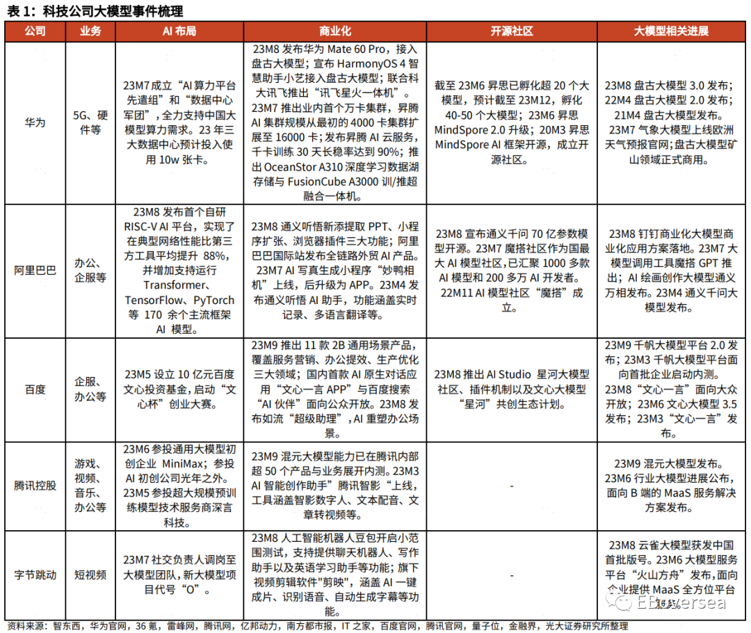 行业竞争:大模型竞争已进入应用落地的关键阶段,百度、华为等头部科技公司相继推出应用产品,腾讯关键优势在于:1)庞大的用户生态可被AIGC切实落地赋能进而打开中长期想象空间;2)独有海量优质的文字、音视频内容数据可用于模型训练。看好腾讯作为头部公司深耕互联网多板块,产品经验丰富,旗下社交网络、游戏等业务直击C端应用场景,大模型赋能潜力可观。
