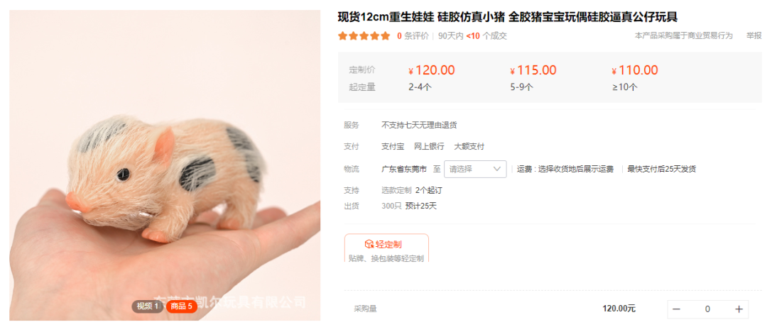 视频同款硅胶猪猪定制玩具在独立站的价格为102美金。(品牌对于这款产品有原创声明)