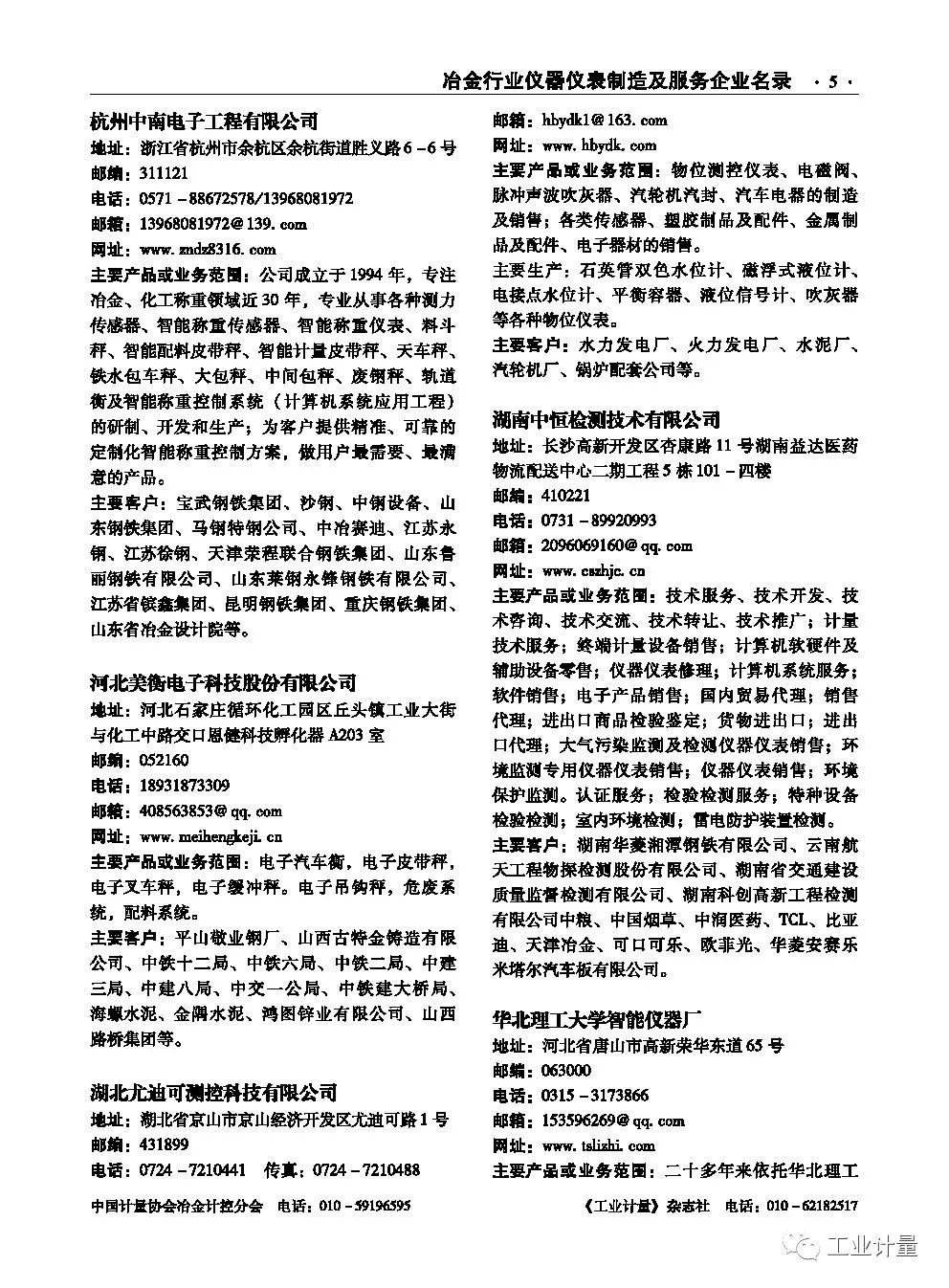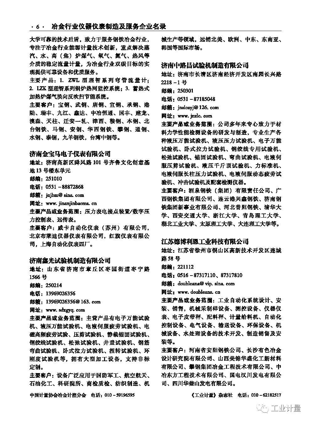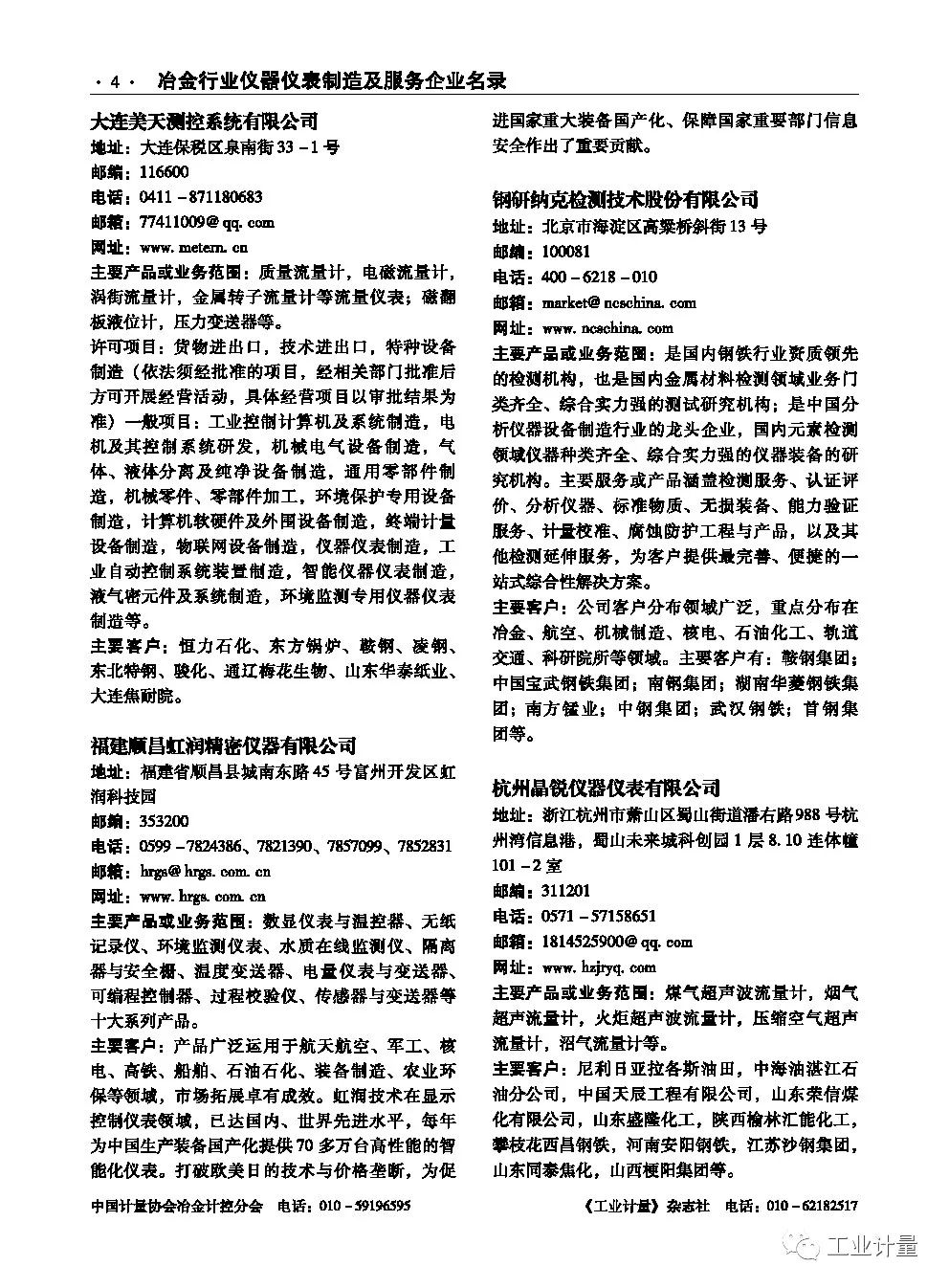 《工业计量》杂志社联合中国计量协会冶金计控分会,今年出版了服务冶金企业名录手册,会在冶金相关会议上作为资料赠送。名录中企业信息免费刊登,明年将继续更新出版,欢迎相关企业提供资料。