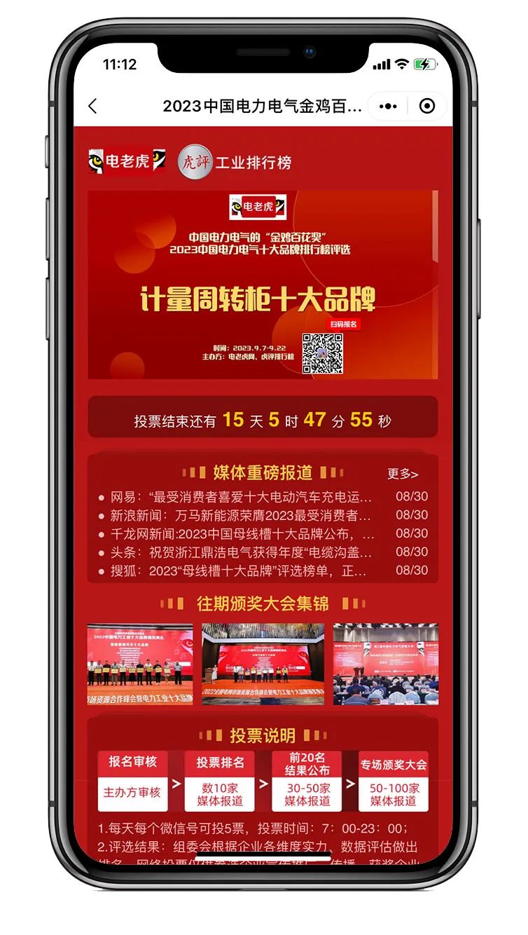 9月7日-9月22日,由电老虎网联合行业协会、专家及国内媒体,共同发起的2023中国电力电气“计量周转柜十大品牌”评选活动,正在火热进行中!