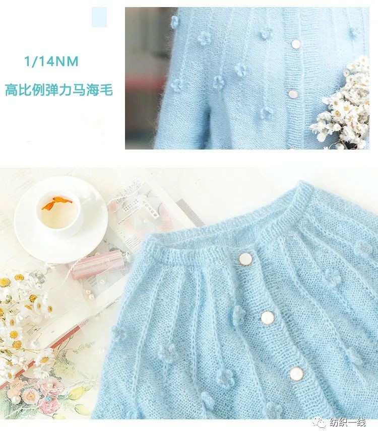 马海毛的毛质轻,弹性好,耐压,蓬松,以独有的光泽,加上自然下垂,柔软丰满。非常保暖,穿在身上一秒钟就暖意洋洋的。触感和棉花糖手感一样,上身之后特别特别的轻薄。