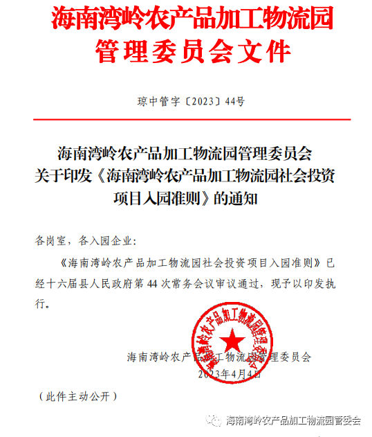2.按《海南湾岭农产品加工物流园“特别极简审批”改革实施方案》的规定办理入园审批手续。