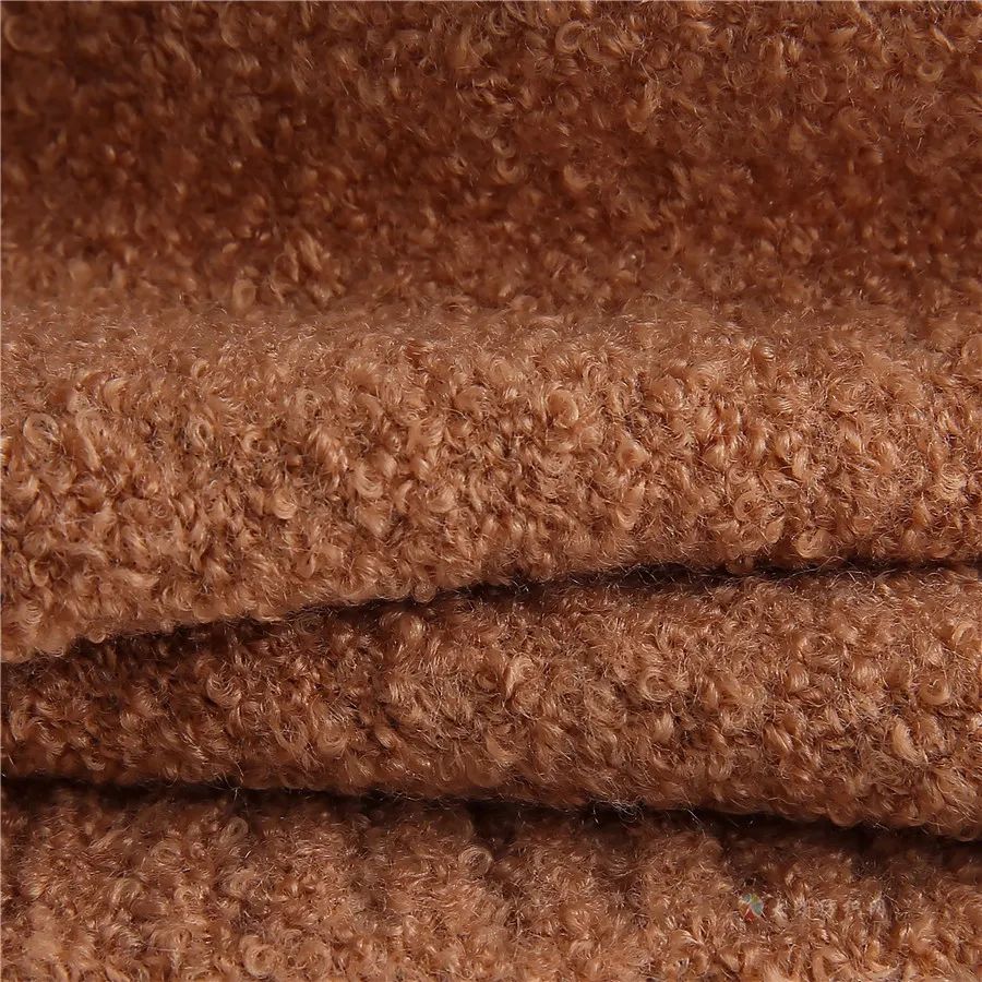 圈圈纱的立体感更强,既有身骨和悬垂感,又增加了产品的布面肌理感,相较于其他纱线圈圈绒面更加饱满,保暖性、亲肤性也更好,穿上它仿佛怀中抱着一只小羔羊,暖乎乎软绵绵!