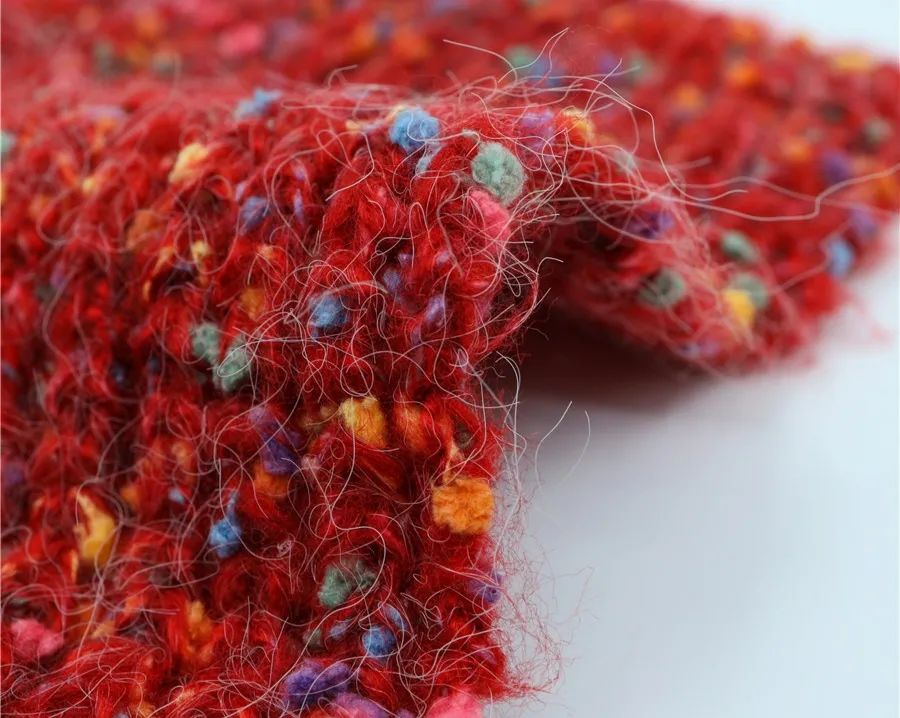 花式纱的类型越来越多花样,各自都是有自己独有的外形,面料富有弹性,手感丰厚。