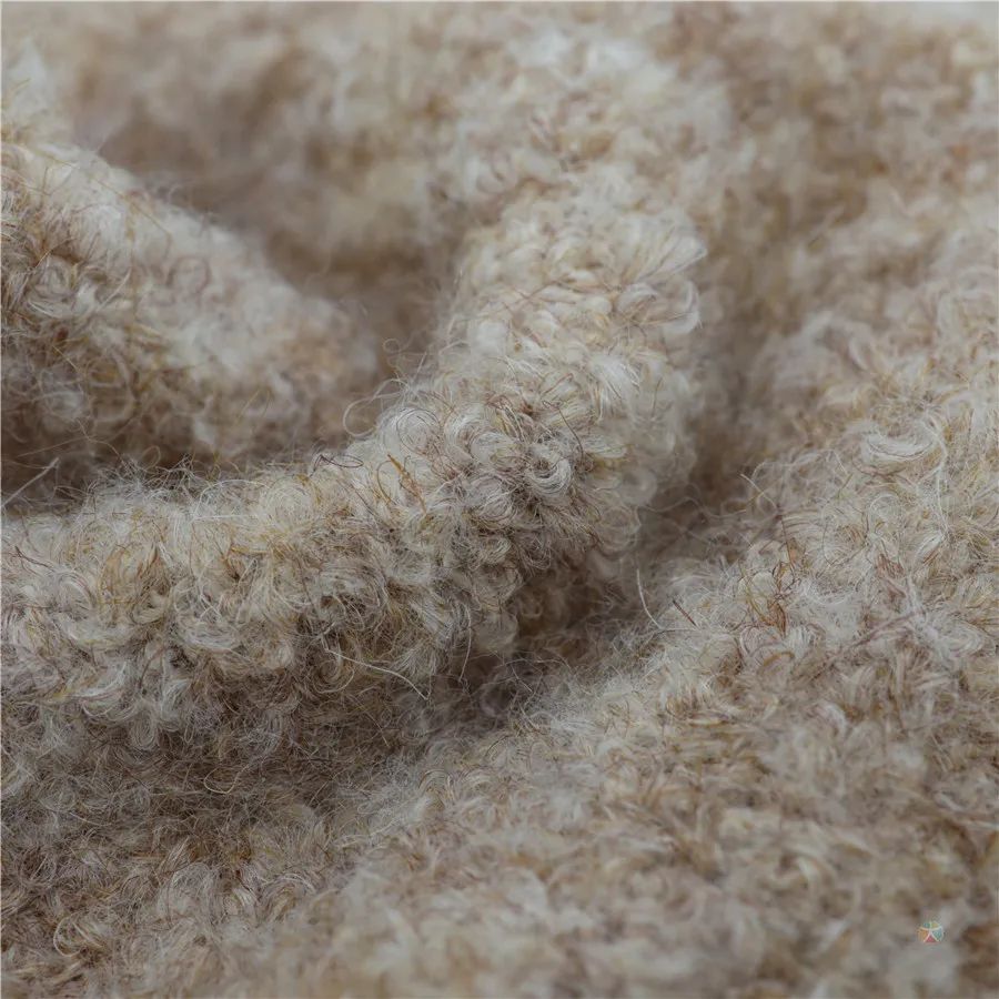 纹理立体具有独特肌理质感的面料,打破常规平面感。可为简约单品带来丰富的外观。利用针法工艺调节圈圈纱的大小与细密程度