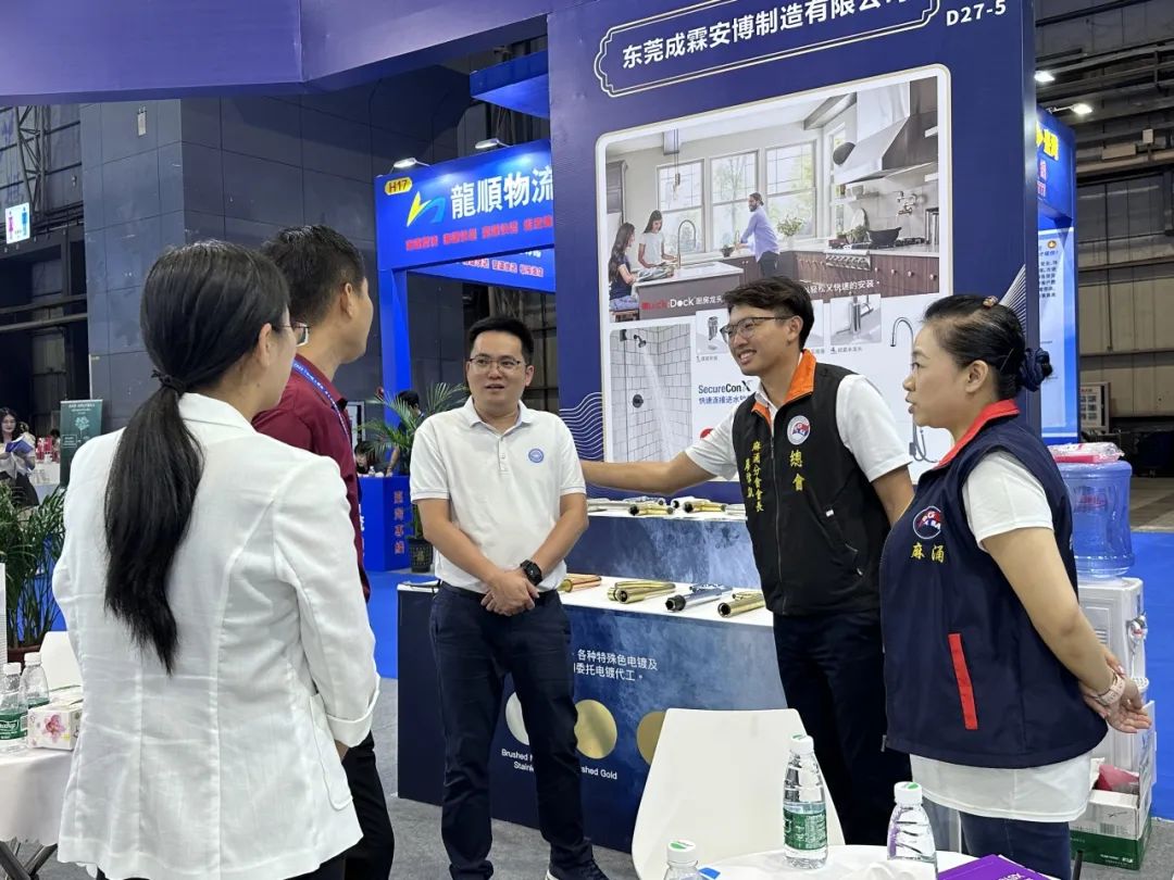 我会一行人到麻涌展厅的“东莞成霖安博制造有限公司”参观。其负责人为大家作了详细的公司主营业务及产品介绍。