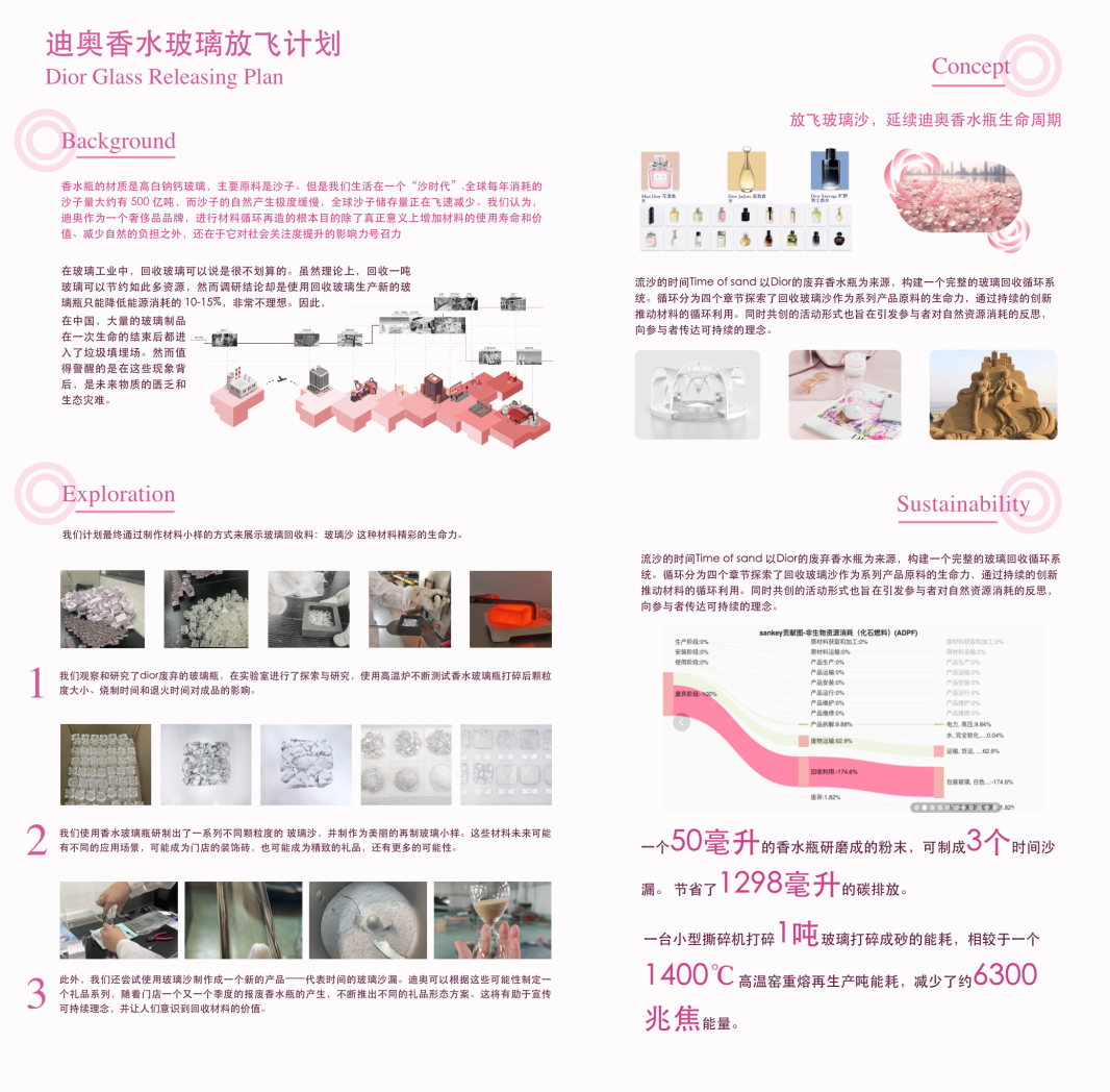 流沙的时间Time of sand 以Dior的废弃香水瓶为来源,构建一个完整的玻璃回收循环系统。