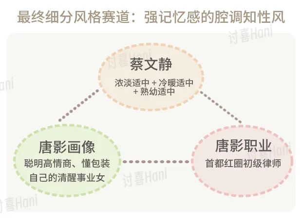 后期的职场风是更松弛慵懒风,有终于不用再装的放松感,也是在知性风上做了小小改动,唐影对自己的定位始终是清醒的。