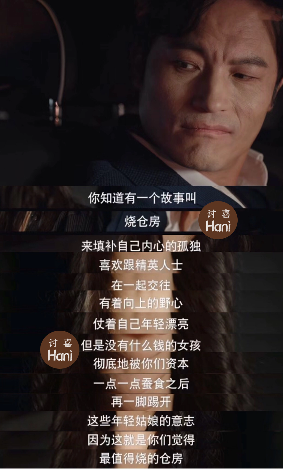 马总只会对她“烧仓房”的判断更加确信,当做可以无事消遣、高处俯视心姿痛苦与拧巴的凝视者。