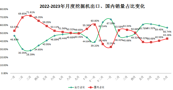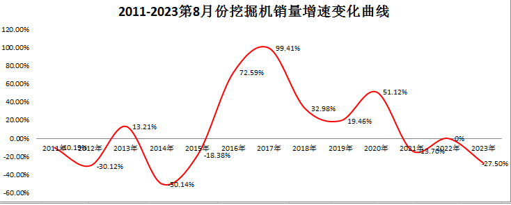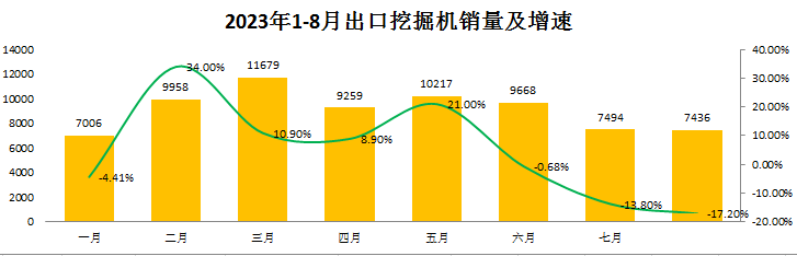 8月份挖掘机销量数据出来了,据统计,2023年8月销售各类挖掘机13105台,同比下降27.5%,其中国内5669台,同比下降37.7%;出口7436台,同比下降17.2%。我们看到8月份的数据仍然保持了一个大比例的持续跌幅,但环比略有上扬。从一月到八月的增速曲线上来看,增速变化呈明显的波动形态。我们是不是可以理解为市场仍然在底部不断的震荡?和前面一样,国内销量的跌幅一如既往的比总销量的跌幅要大一点,波动形状基本一致,但波幅小一些,这主要是出口销量变大的影响。我们可以看到,从2021年以来,每年的挖机销量肉眼可见的减少,图上看,代表今年销量的黄色柱子又明显矮了一层。很清楚的看到,不断探底的过程,但是否到底了呢?回顾2011年-2014年的图形可见,有很大可能节本接近底部了。但在底部徘徊多久那就不好说了。比如说上一轮萧条的时候,中联重科董事长说要做好长期低谷的打算,工程机械会呈L型发展,但实际上也没说对是不。既没有快速反弹,也没有长期低谷,保持了一个五六年一变的周期性波动。那我们为什么说内忧外患呢?内忧是有了,国内市场反正就是这样子,出口市场不是很好吗?国内一众企业二季度海外市场业绩都不错啊是不:从增幅曲线的形态来看,挖掘机出口销量有个明显的下滑态势。2季度的出口量还是不错的,整个上半年都处于一个比较好的状况,所以各企业上半年海外市场大丰收也能从数据上印证。但7月起开始连续下跌,那么各企业业绩如何,我们还得等到3季度业绩报告出来才行。但可以肯定的是海外的市场也是越来越不好做了。