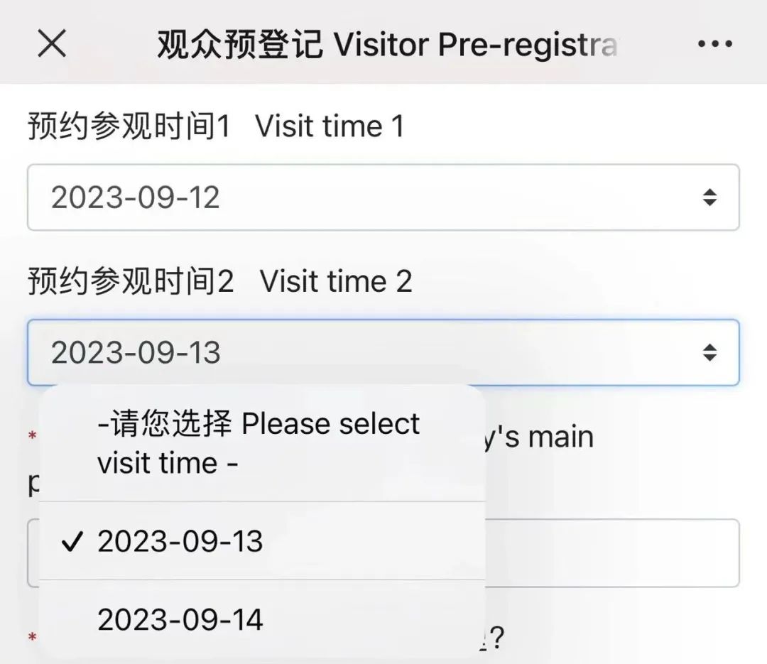 本届展会入场参观仅支持“预约登记”,如未在观展前一日24时前预约则不可当日入馆。如果希望展会第一天即9月12日参观,需要在不晚于9月11日24时进行参观预登记。若9月12日预约名额已满,则只能预约13日、14日参观;9月12日开展只能约13或14日。本届展会需选择对应参观的日期,若未选择参观日期则不可入馆,参观展会必须实名入场(姓名、身份证、手机号码需真实准确),预约页面如下所示: