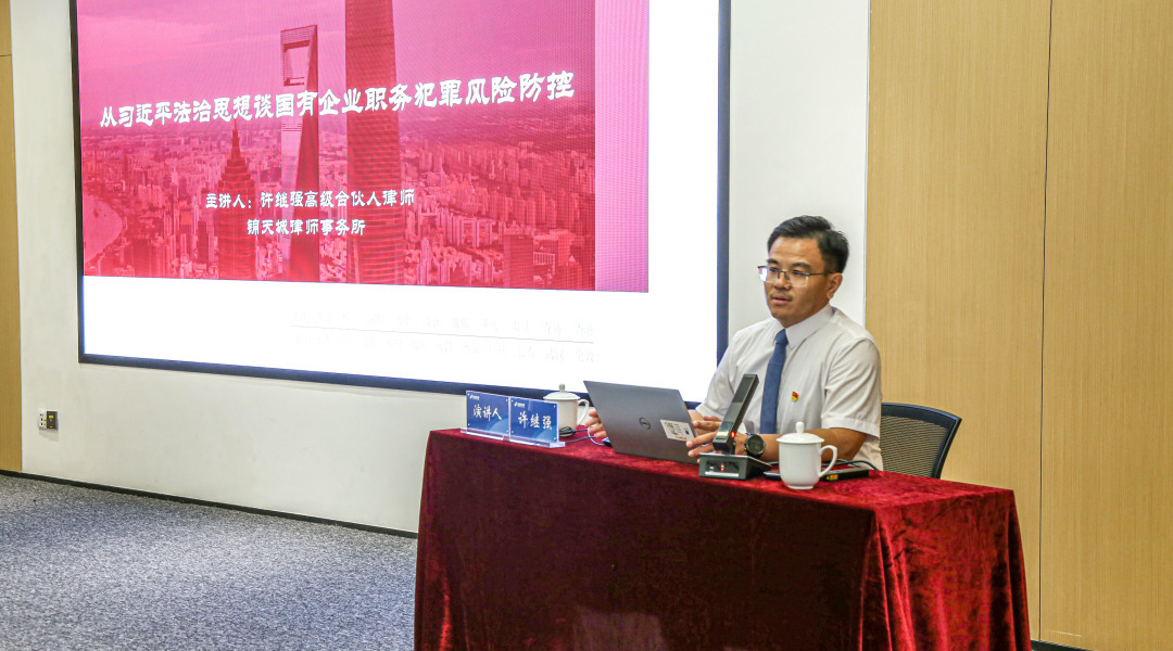 8月25日下午,集团党委邀请锦天城律师事务所高级合伙人许继强律师作国有企业职务犯罪风险防控专题讲座,从刑法和法理切入,以案说法,深刻剖析,现场问答互动交流,针对性强,警示作用大,是一堂非常生动而深刻的“法纪教育课”。