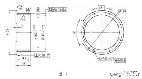 按照图5加工完成后,再用心轴定位,轴向压紧端面,将工艺螺纹车到零件尺寸φ72mm,并保证尺寸公差和形状位置要求。