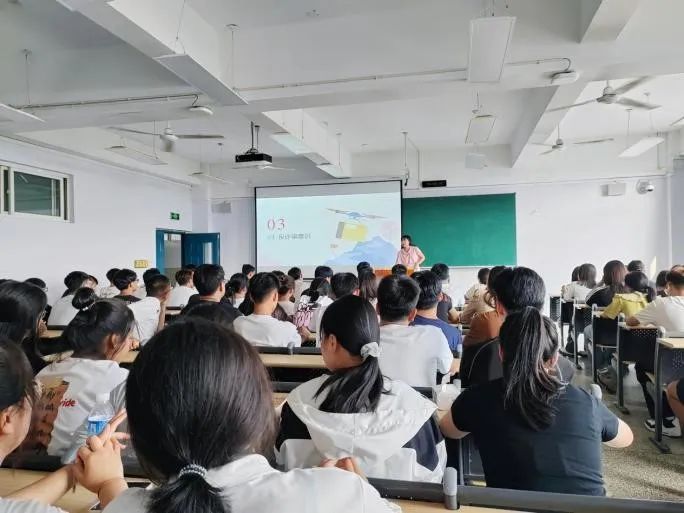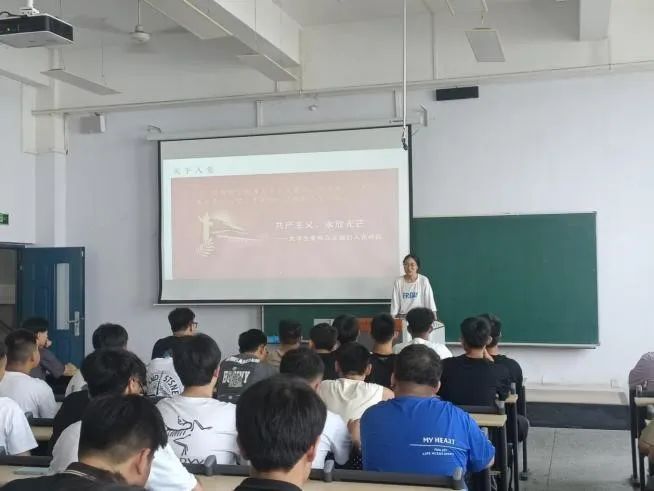 丁旭老师为机器人22301班和无人机22302班新生介绍了学校基本情况和办学历史,同时进行了安全教育、入党启蒙教育。