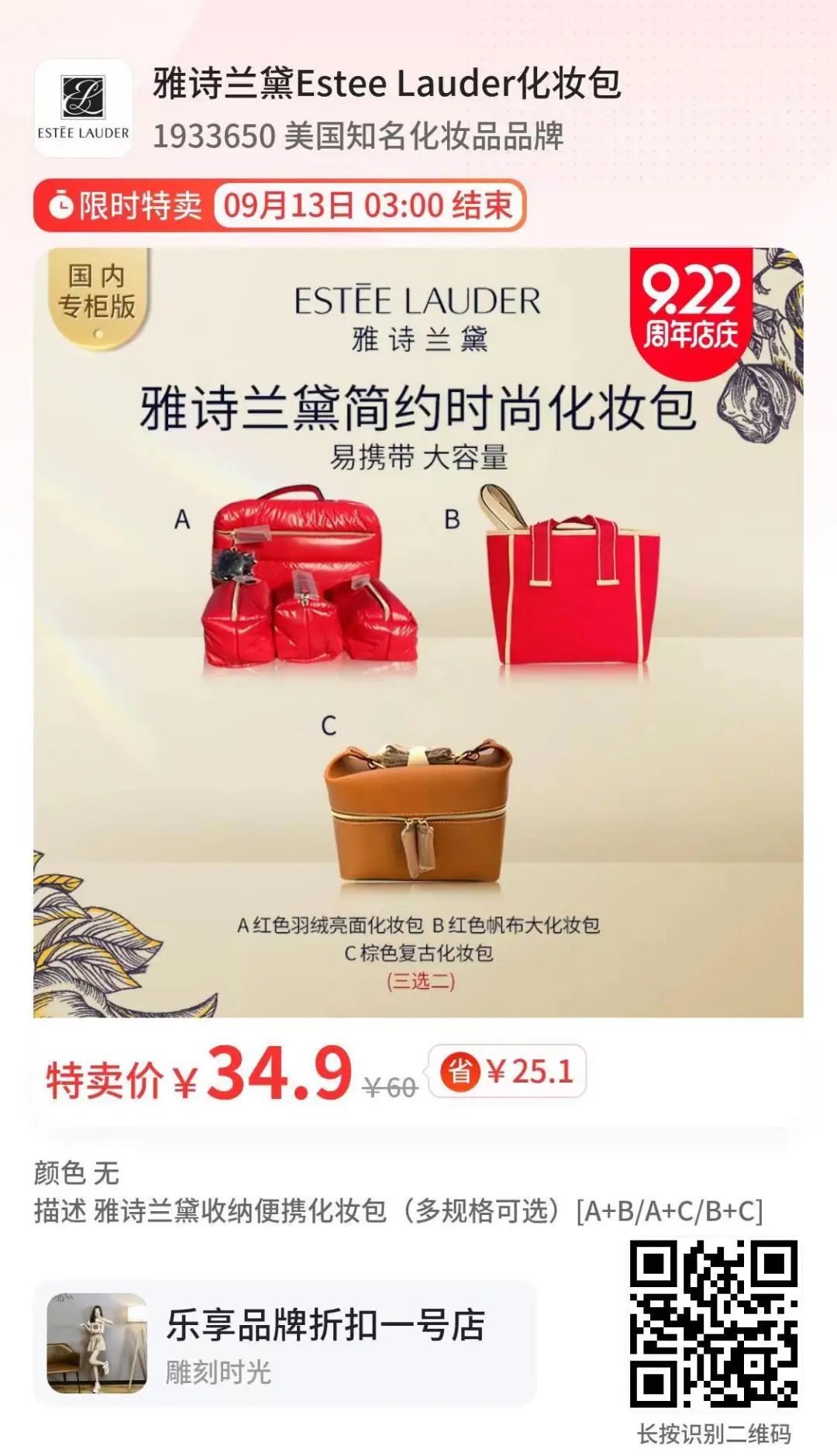 ↓↓↓【购买或了解更多】:本店多数商品均支持七天无理由退换货、退换运费无忧!扫描识别图片下方的二维码即可,本期活动限时限量;请注意图片上的抢购截止时间,售完为止,请提前抢购!
