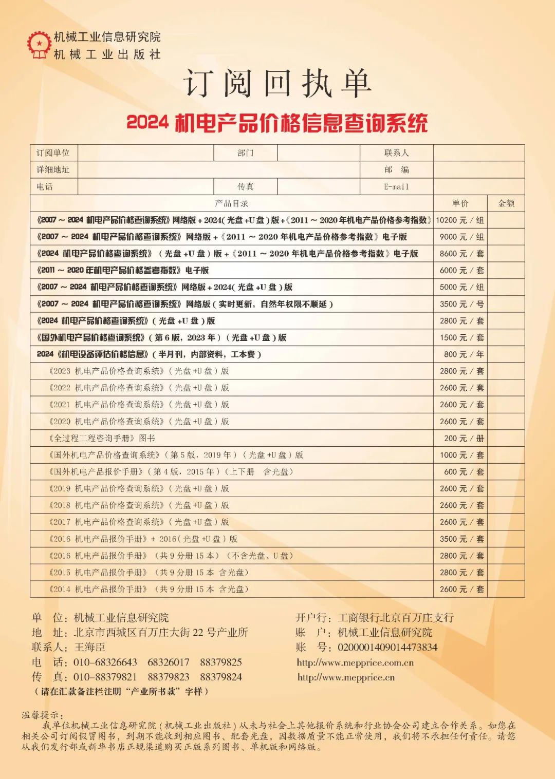 2024年机电报价产品预售已经开始,欢迎各位客户联系咨询。
