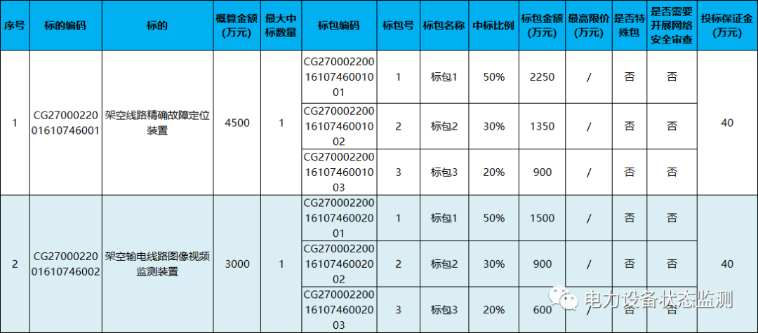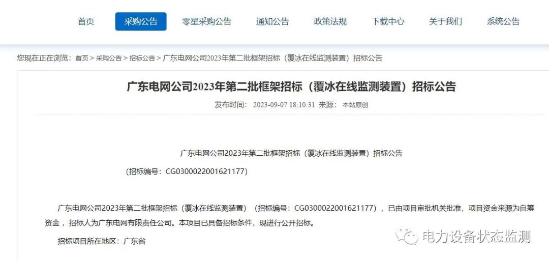 近期,广东电网公司发布“广东电网公司2023年第二批框架招标(覆冰在线监测装置)招标公告”,其中: