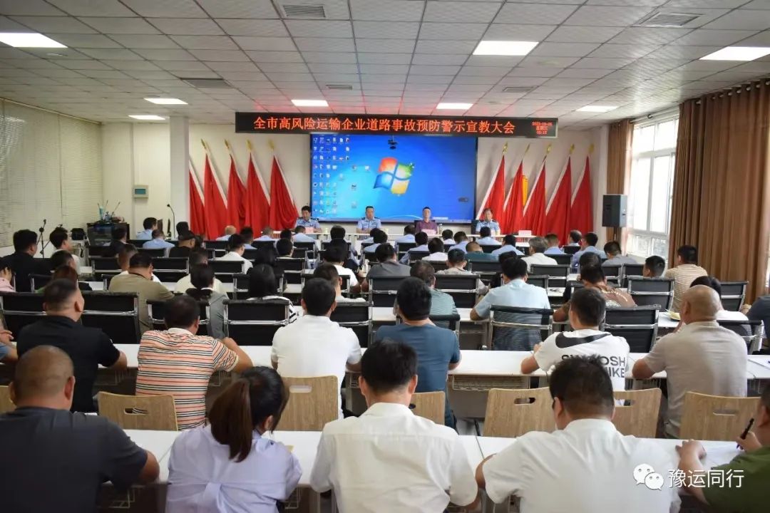 为贯彻落实全市道路交通安全问题整治部署会要求,防范客货运企业安全风险,推进全市重点运输企业安全管理工作,扎实做好企业安全隐患排查整改工作,预防道路交通事故发生,9月6日上午,南阳市交通运输局联合市公安局交通管理支队召开全市高风险运输企业警示宣教大会。90家高风险运输企业负责人参加了会议。