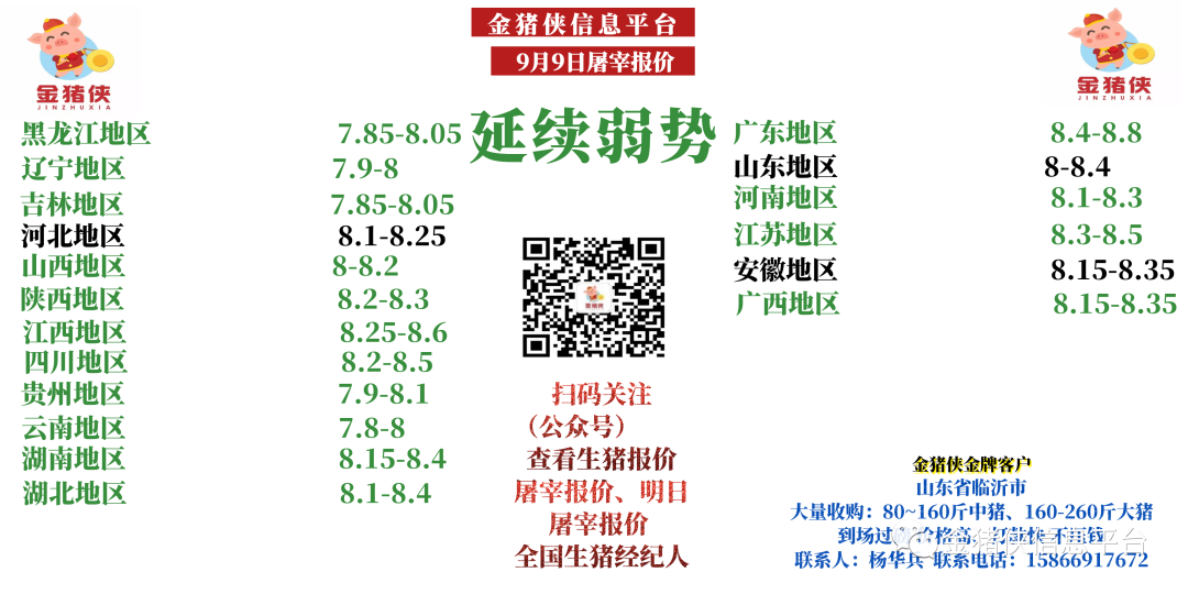 【金猪侠】9月9日屠宰企业收购价~【延续弱势】