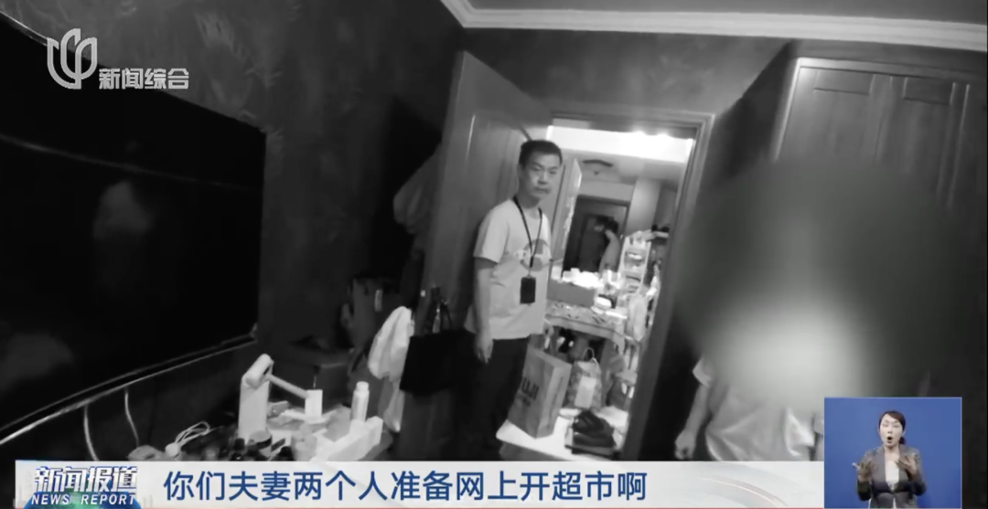 孙彬彬 浦东公安分局前滩派出所执法办案队队长:一共有一两千件的商品在那里放着,而且吊牌都没有撕,让我感到非常震惊,包括他们家的冰箱打开,里面有些有机蔬菜还有牛排,也是这品牌的商品。