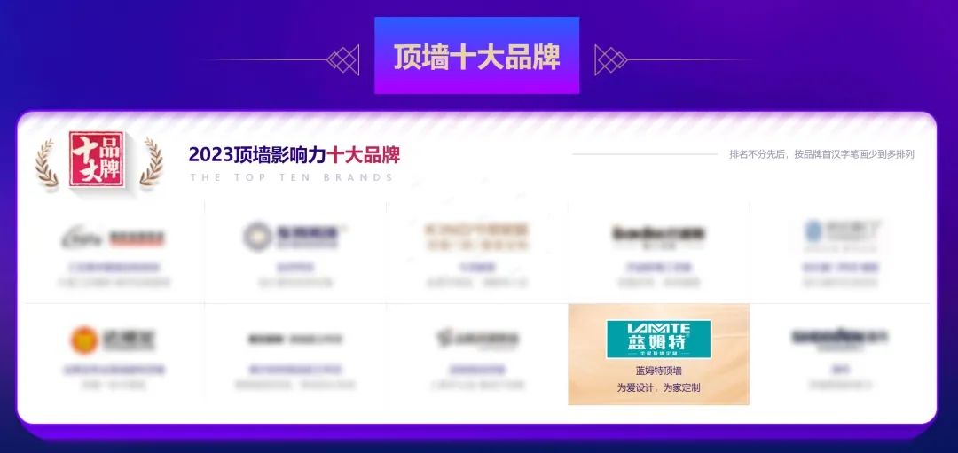 蓝姆特顶墙在此次评选活动中凭着强大的品牌实力、卓越的产品质量及优质的金牌服务荣获"顶墙影响力十大品牌"殊荣,感谢行业专家及消费者对我们品牌的认可。