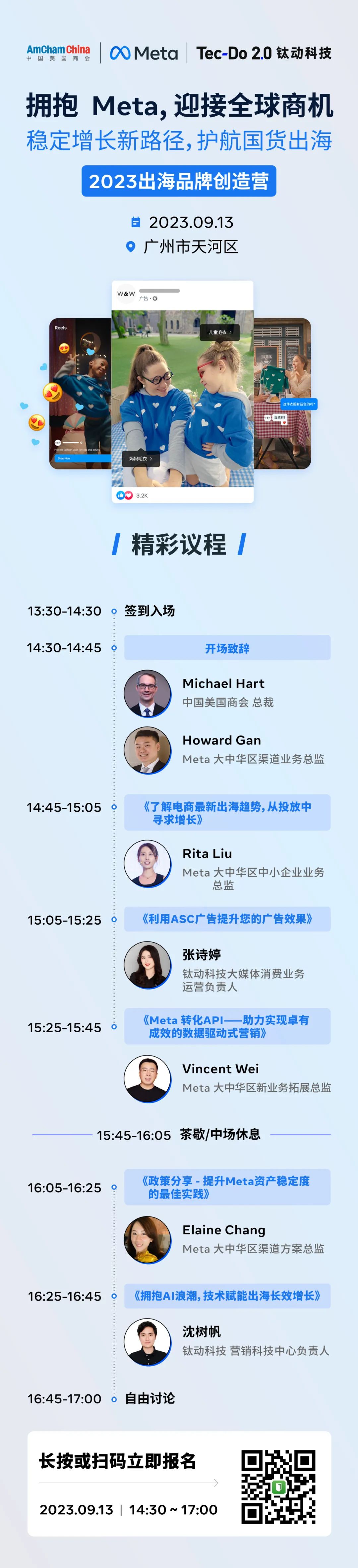 9月13日,钛动科技将携手Meta 、中国美国商会在广州共同举办主题为“稳定增长新路径,护航国货出海”的Meta 出海品牌创造营线下主题活动。本次活动将会邀请来自Meta、中国美国商会、钛动科技以及阔色等多位深耕品牌出海一线的嘉宾到场分享,为帮助出海品牌在竞争激烈的全球市场中取得突破和成功,实现业务的稳步增长提供切实可落地的方法论和有效建议。