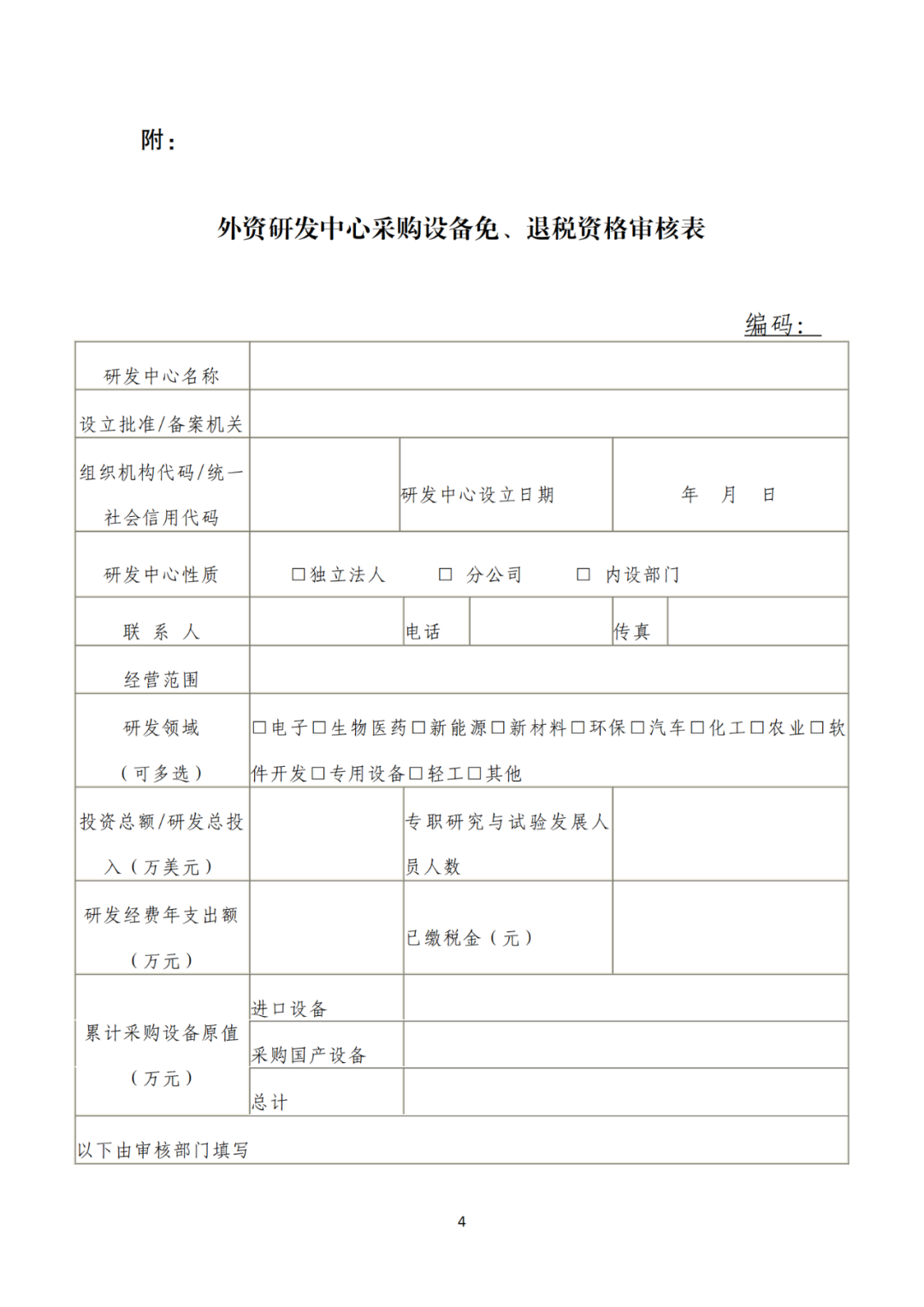 附件一:外资研发中心采购国产设备退税资格审核认定办法