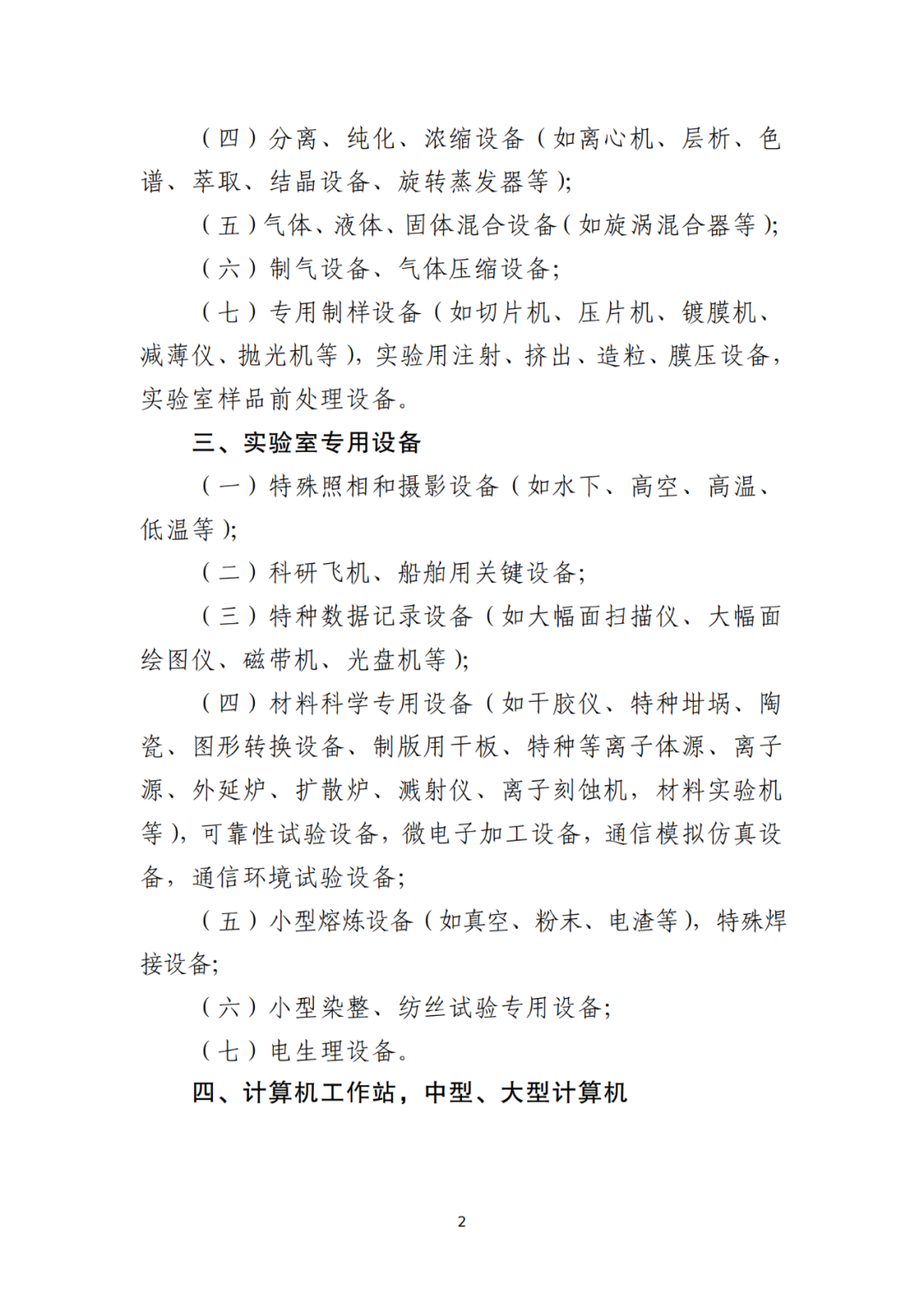附件二:科技开发、科学研究和教学设备清单