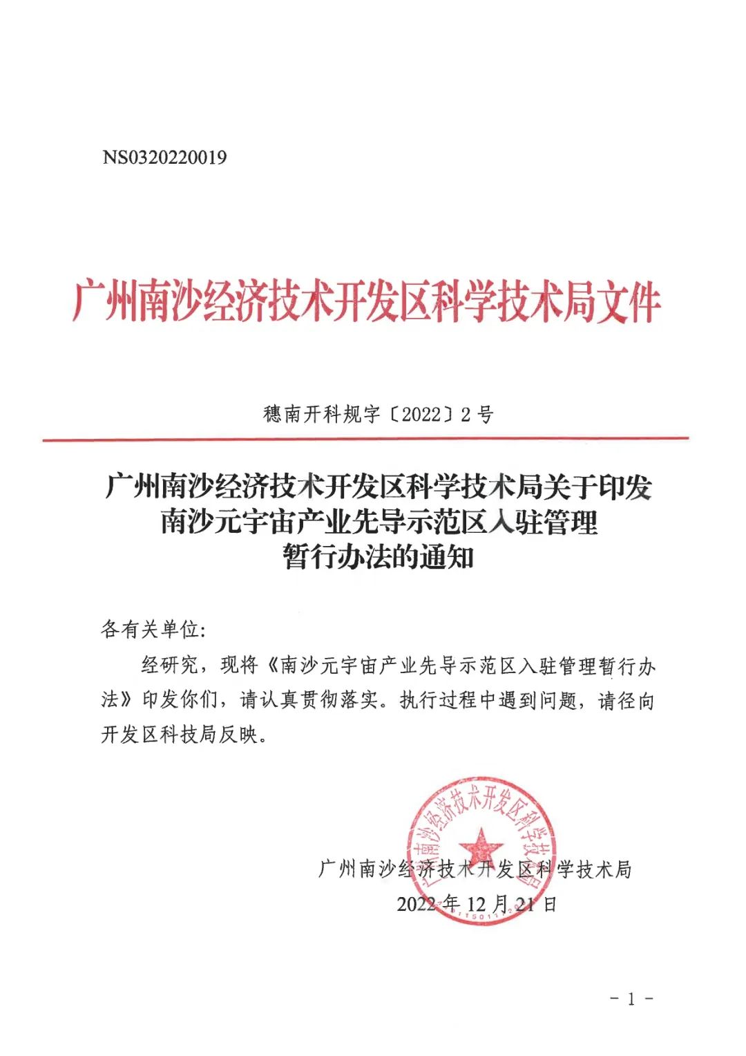 4. 《广州南沙经济技术开发区科学技术局关于印发南沙元宇宙产业先导示范区入驻管理暂行办法的通知》