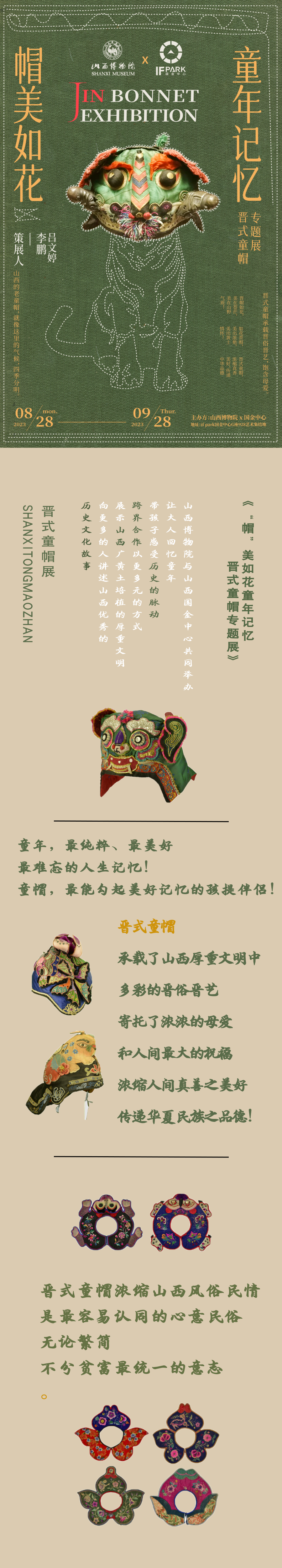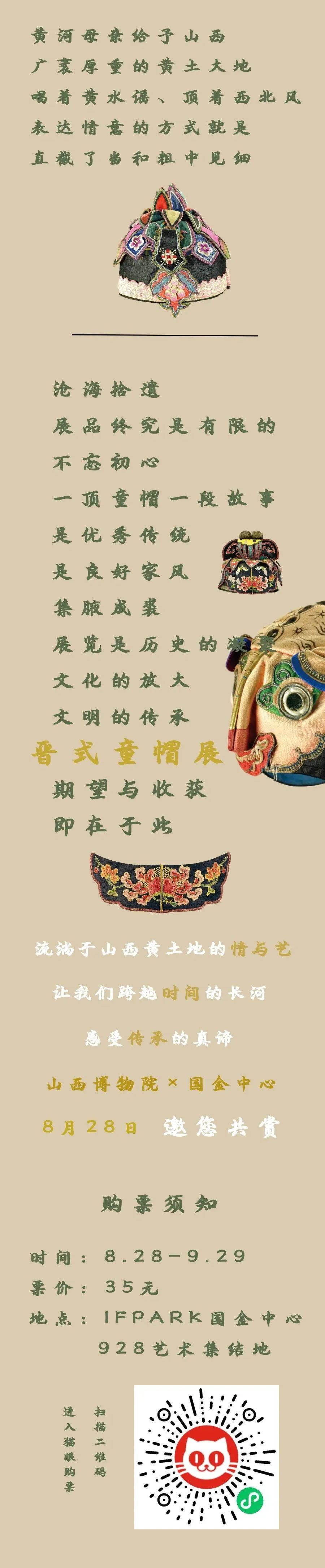 更多展览信息请点击山西博物院×国金中心 | 晋式童帽展,邀您一同开启国潮山西~