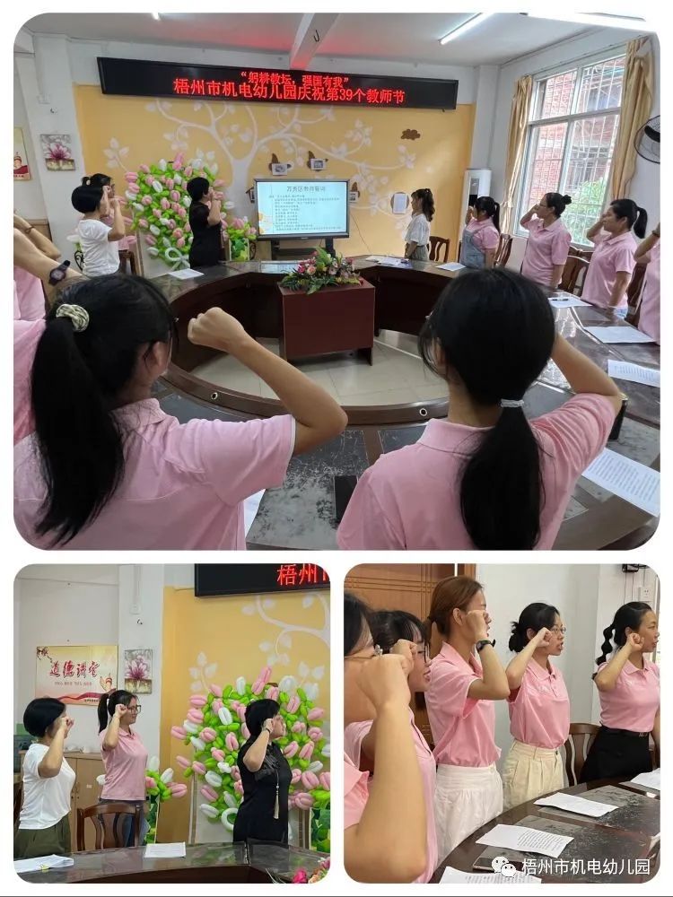 教师节的庆祝活动,在明园长带来的美好祝愿中拉开了帷幕,她首先向机电幼全体教师表达了节日的祝福,并带领教师们重温教师誓词,勉励各位教师坚守尊师重道、立德树人的初心使命,共同当好孩子们成长的引路人,收获个人和幼儿的共同成长。