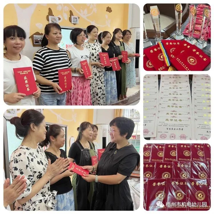 园领导为获得论文评比、城区及市级优秀教师的老师颁发荣誉证书。
