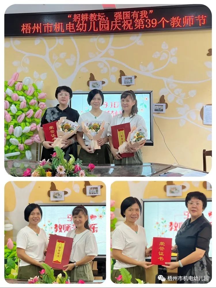 9月7日,为感谢全体教职工的默默奉献,弘扬教书育人、为人师表、爱岗敬业的良好师德风尚,在第39个教师节来临之际,梧州市机电幼儿园开展了主题为“躬耕教坛,强国有我”的教师节庆祝活动。