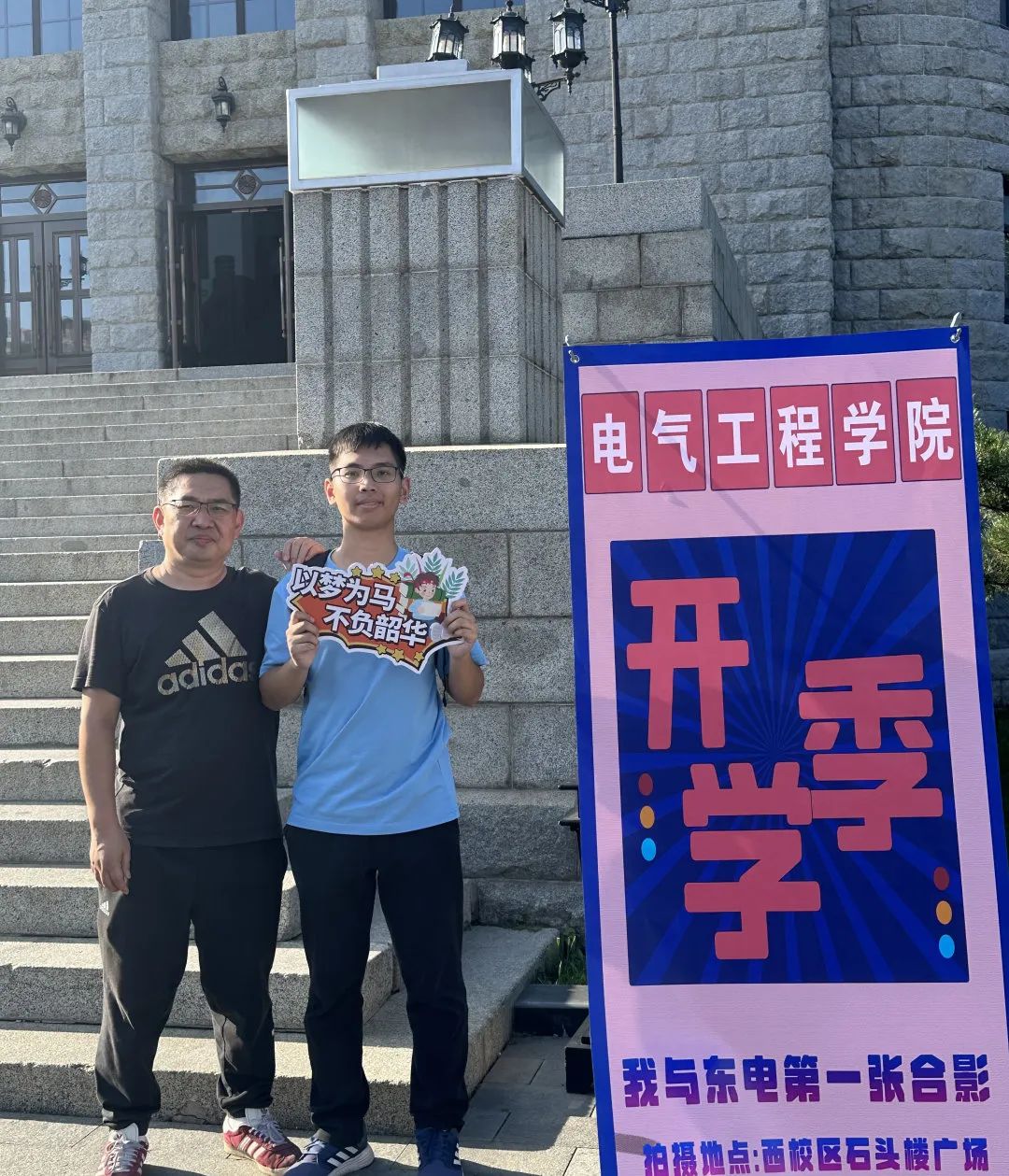 电气工程学院专门设计了拍照即出片新生打卡点。在石头楼前,同学们有序地打卡拍照,记录下入学的美好瞬间。