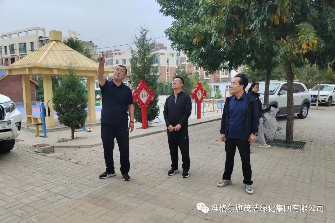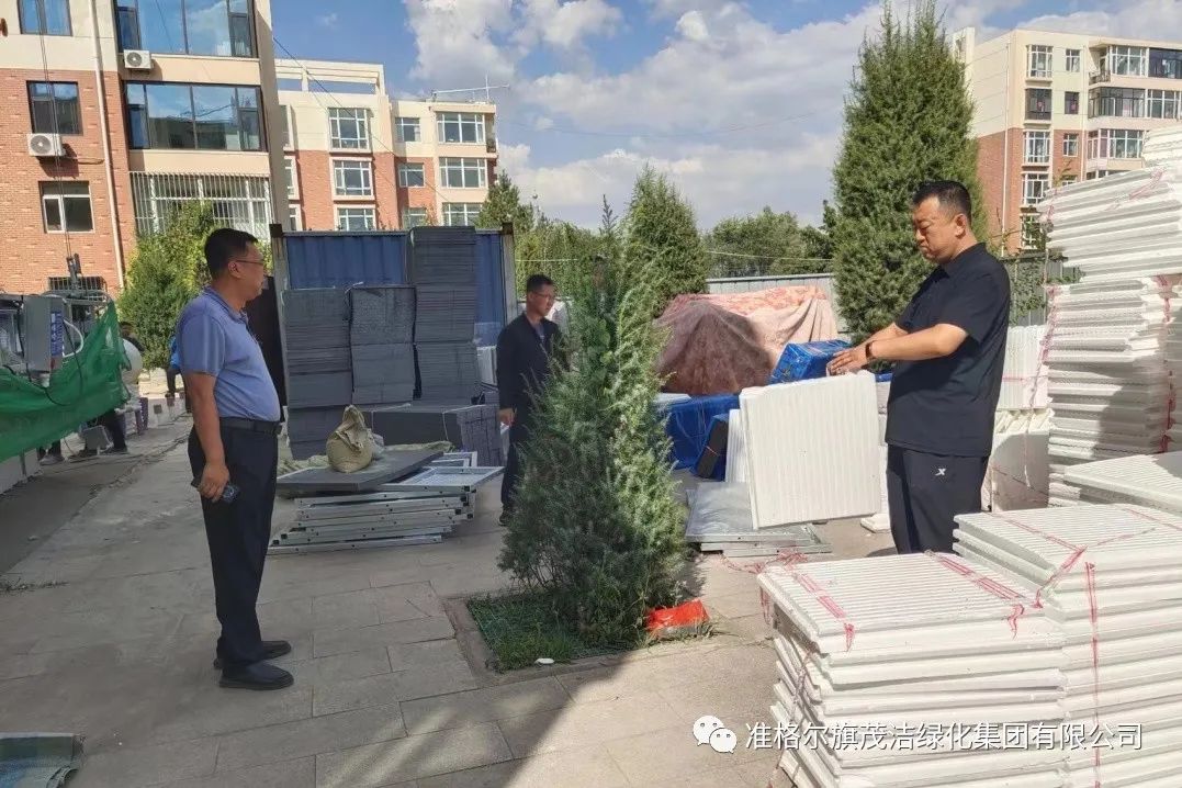 9月4日下午,茂洁绿化集团有限公司总经理刘尚旭、副总经理刘毅、工程部部长蔺金,对景泰华府老旧小区节能改造项目进度现场走访调查,了解施工进度慢的原因,并提出整改措施。