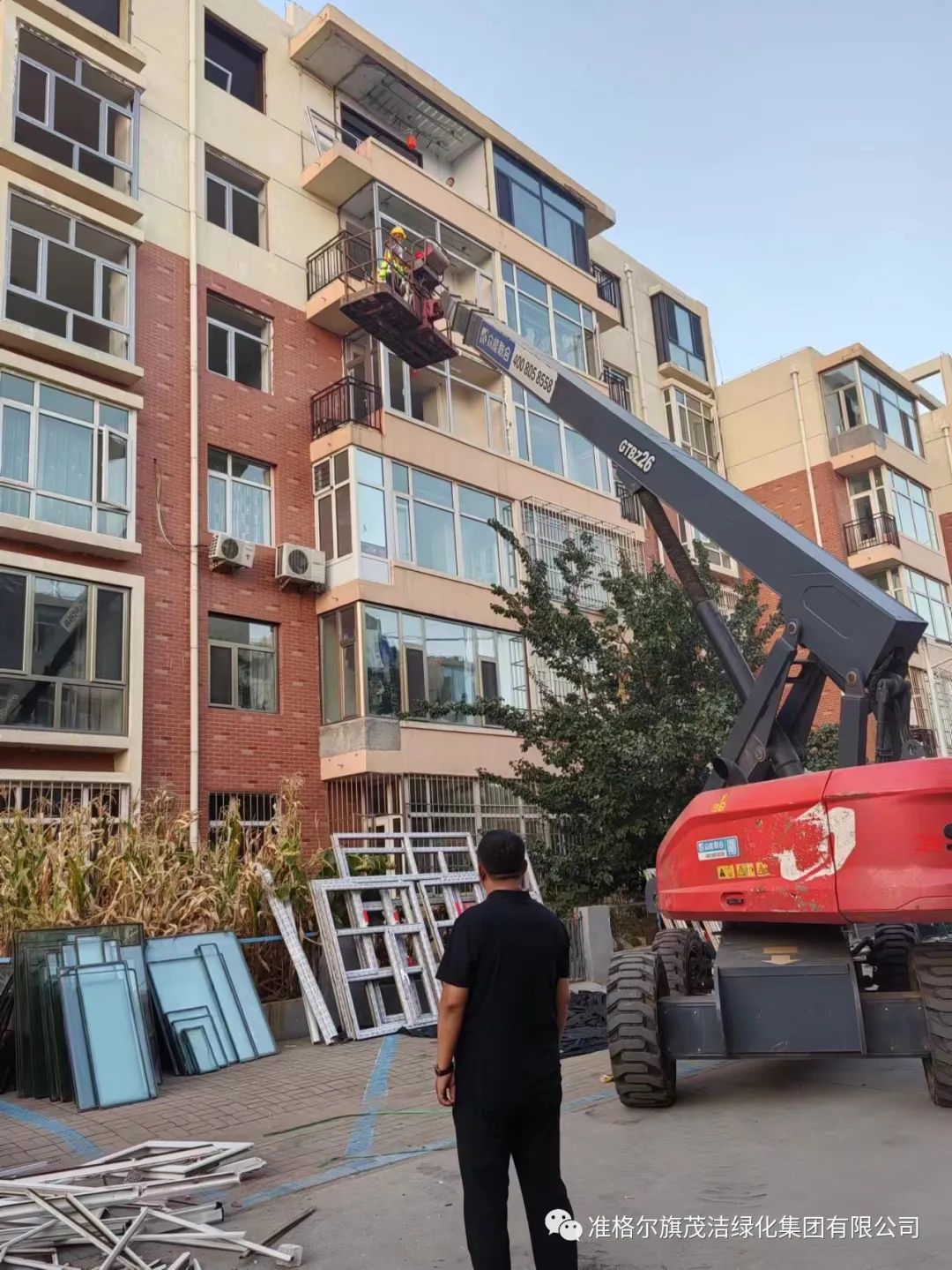 9月7日早上,茂洁绿化集团有限公司副总经理刘毅,工程部副部长冯贵、项目经理赵占宽与劳务单位对景泰华府老旧小区节能改造外墙保温和窗户安装施工过程中存在问题提出整改建议。