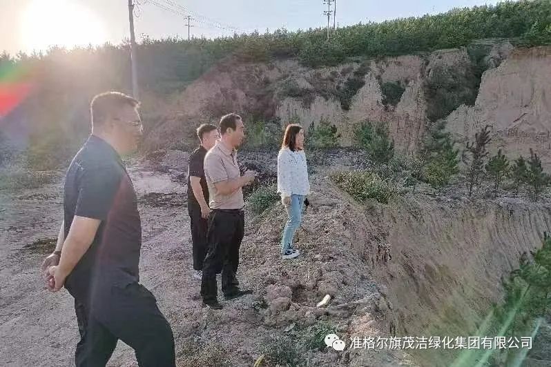 9月5日下午,茂洁绿化集团有限公司监事会主席马东志、项目前期部部长白燕、施工单位工作人员对固废综合处理项目已征范围林地恢复情况进行实地查看。