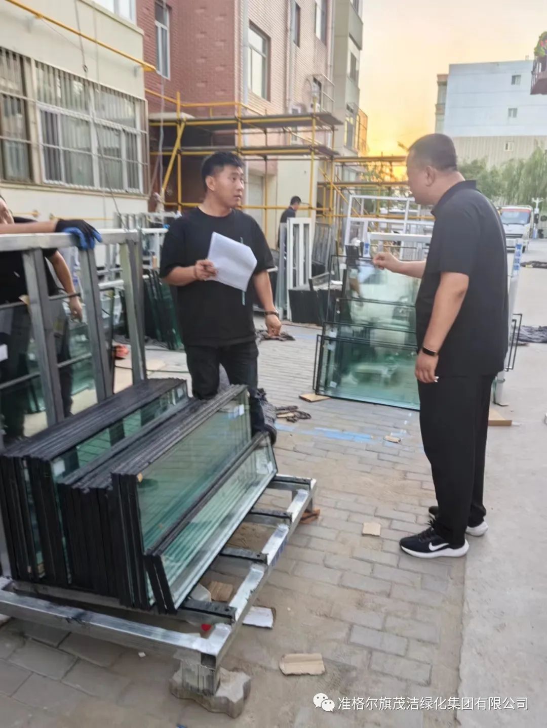 9月5日晚上,茂洁绿化集团有限公司副总经理刘毅、工程部副部长冯贵,对景泰华府老旧小区节能改造项目中安装窗户环节进行现场查看。
