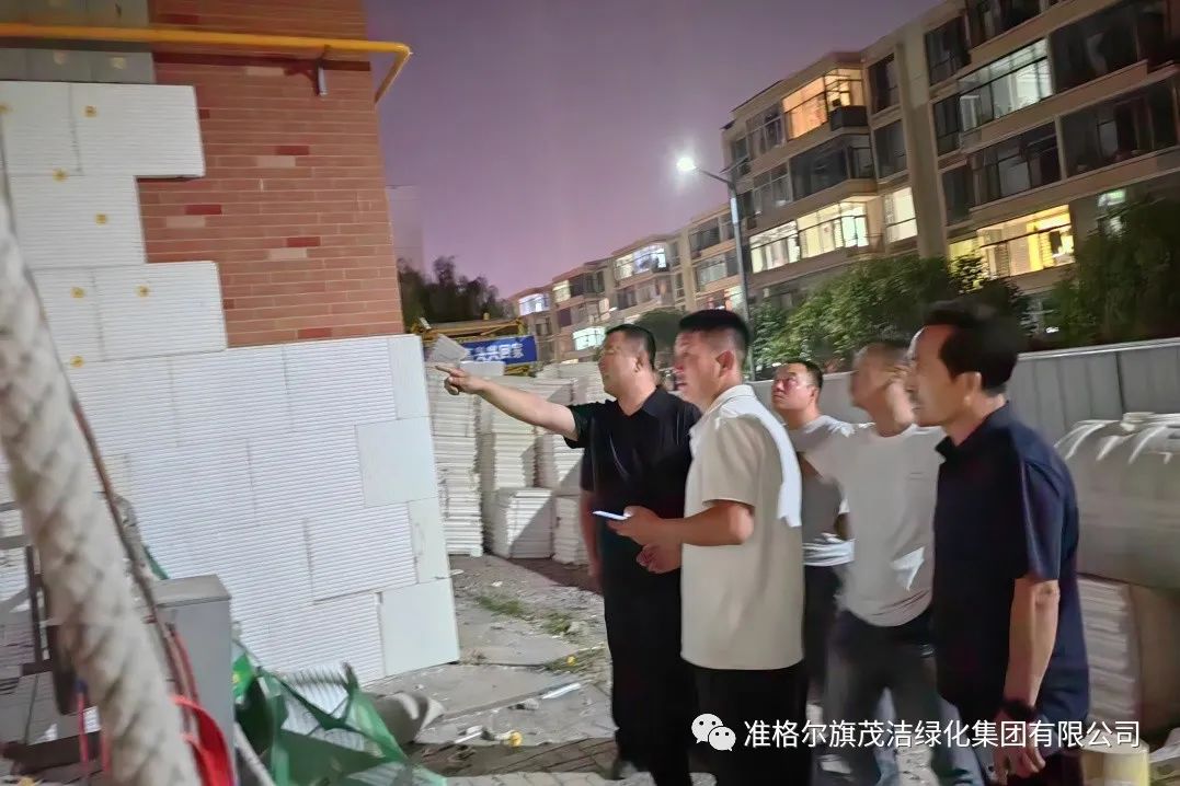9月6日晚上,茂洁绿化集团有限公司副总经理刘毅、工程部部长蔺金、项目经理赵占宽与劳务单位对景泰华府老旧小区节能改造外墙保温施工过程中存在问题提出整改建议。