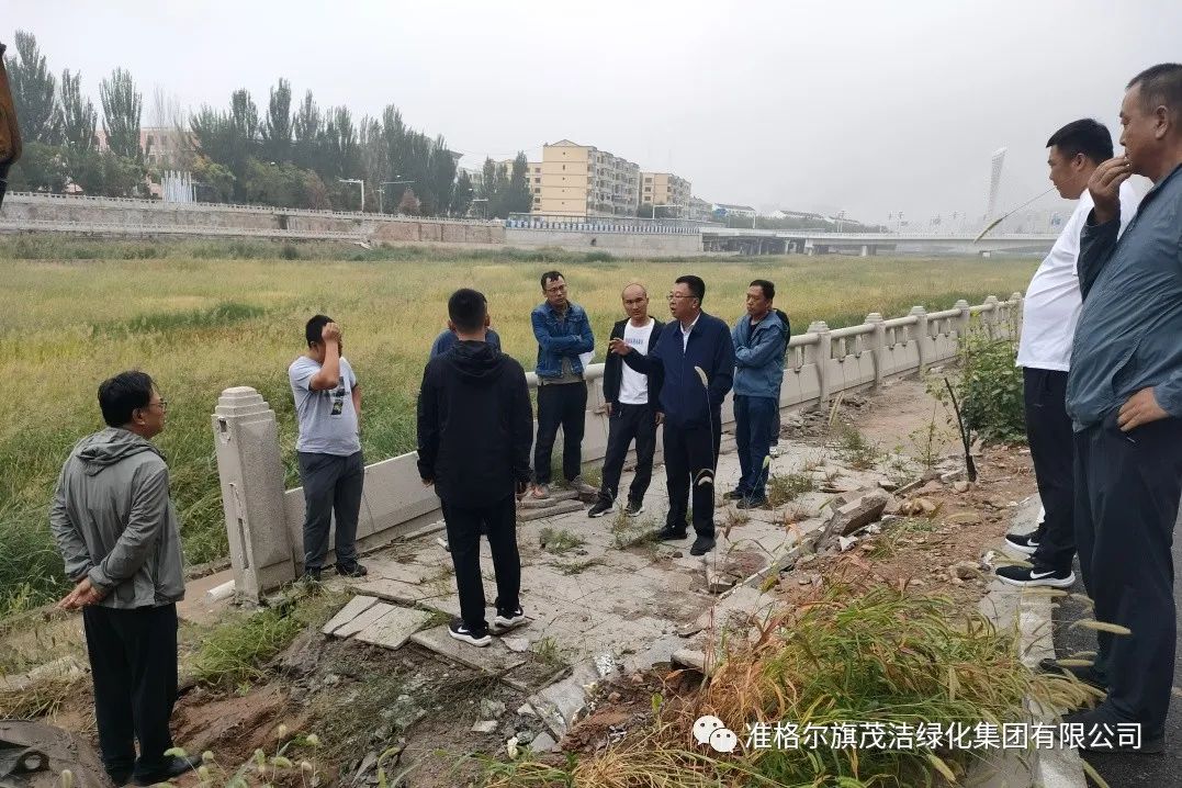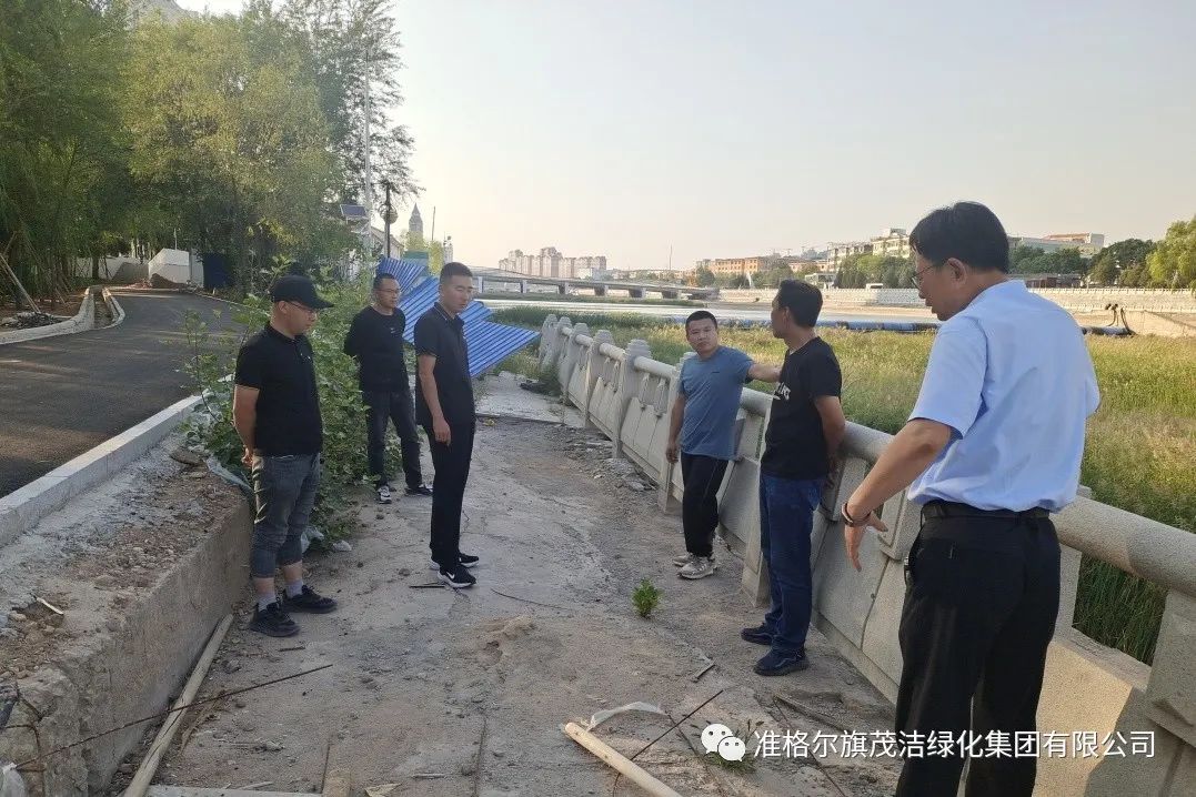 9月5日下午,旗园林绿化事业中心主任陈强、我公司总经理刘尚旭、纪检组长武春宇、副总经理史鲁华和陈巴图,查看塔哈拉川(开源桥至迎泽桥)南北两侧河道挡墙立面提升改造工程项目进展情况,研究解决项目实施中存在的问题。
