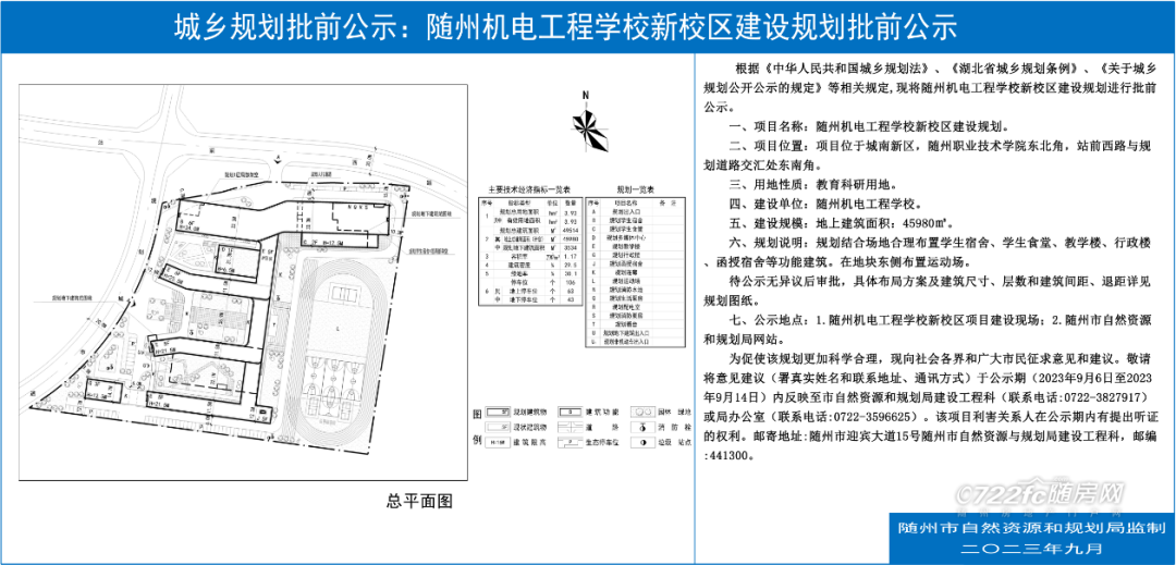 根据《中华人民共和国城乡规划法》、《湖北省城乡规划条例》、《关于城乡规划公开公示的规定》等相关规定,现将随州机电工程学校新校区建设规划进行批前公示。