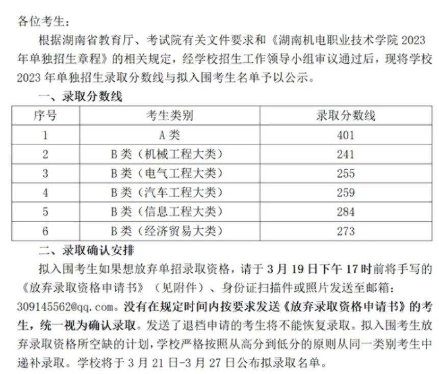 2023年的录取分数线