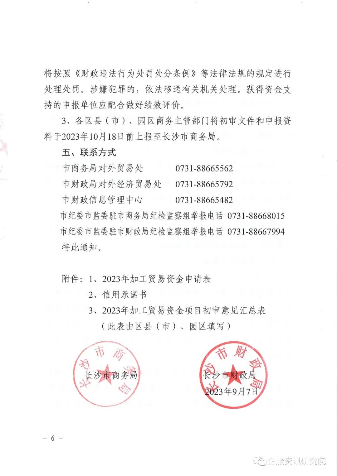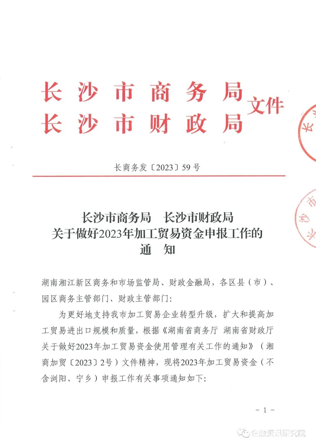 长沙市商务局 长沙市财政局关于做好2023年加工贸易资金申报工作的通知