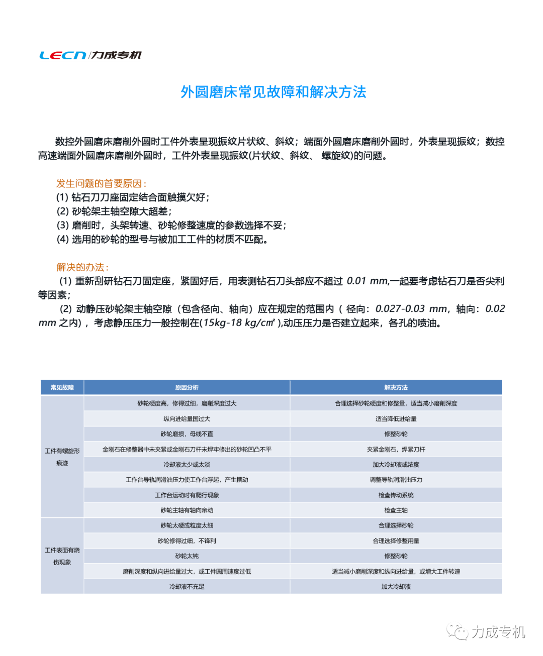 外圆磨床常见故障和解决方法